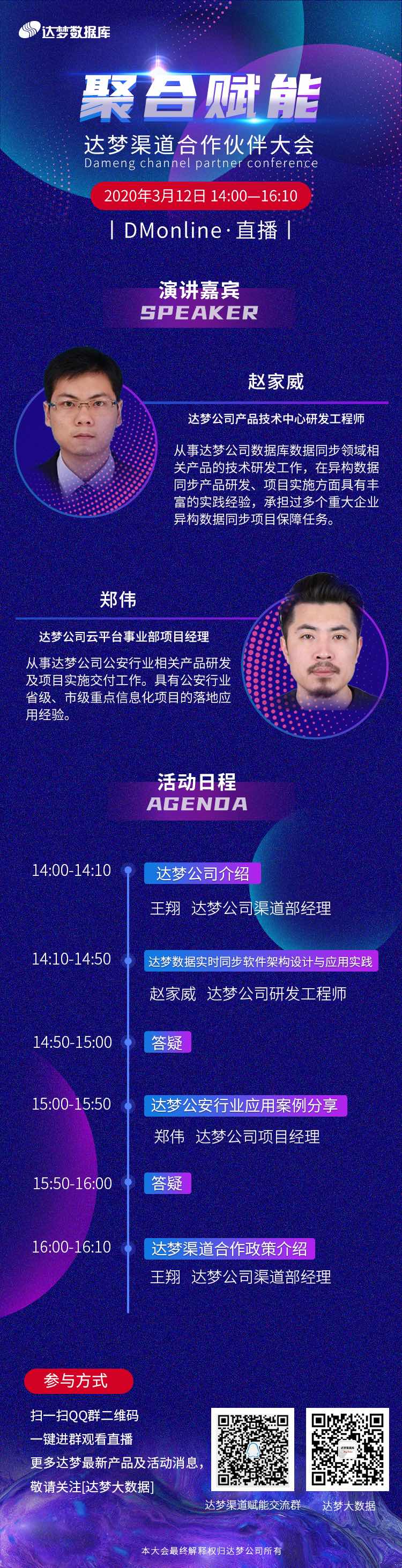 "达梦数据库—聚合赋能 重点提示:柔性替换解决方案宣讲、公安行业解决方案宣讲! 欢迎有兴趣的合作伙伴及朋友扫描进群,统一在群里公布直播链接,观看直播。"